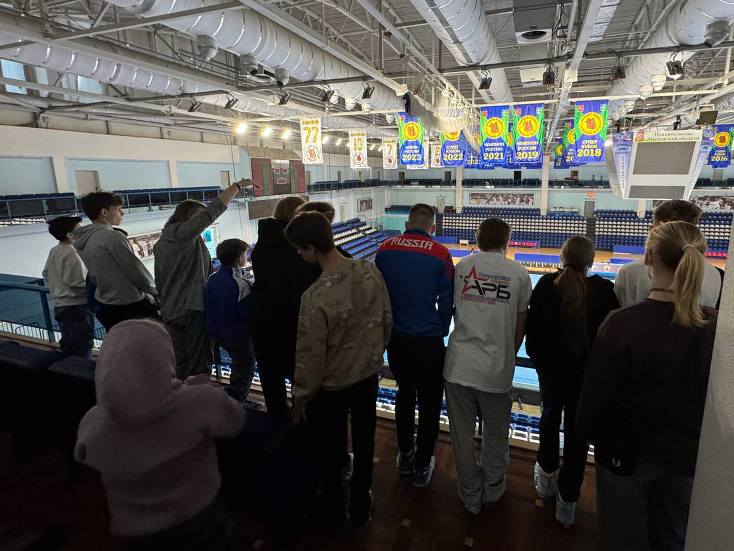 На следующий день, с утра, в Дворце Спорта «Олимпийский» имени В. С. Максимова, ребята увидели арену, где играют «Чеховские медведи», тренировочный зал, раздевалку, да, собственно весь спортивный комплекс. Ну и узнали многое о клубе «Чеховские медведи».